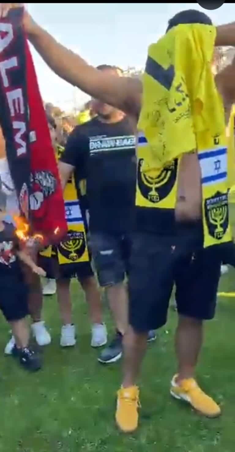 אבל למה של הכדורסל? אוהדי בית"ר ירושלים העלו באש חולצה וצעיף של הפועל ירושלים