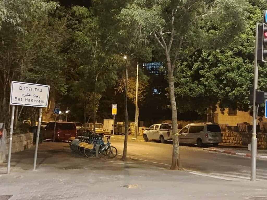 Sur la photo accompagnant cet article, un simple panneau indique : « Bet HaKerem ». Immobile, à l’ombre d’un arbre, près d’une station de vélos, éclairé par la lumière douce de la fin d’après-midi