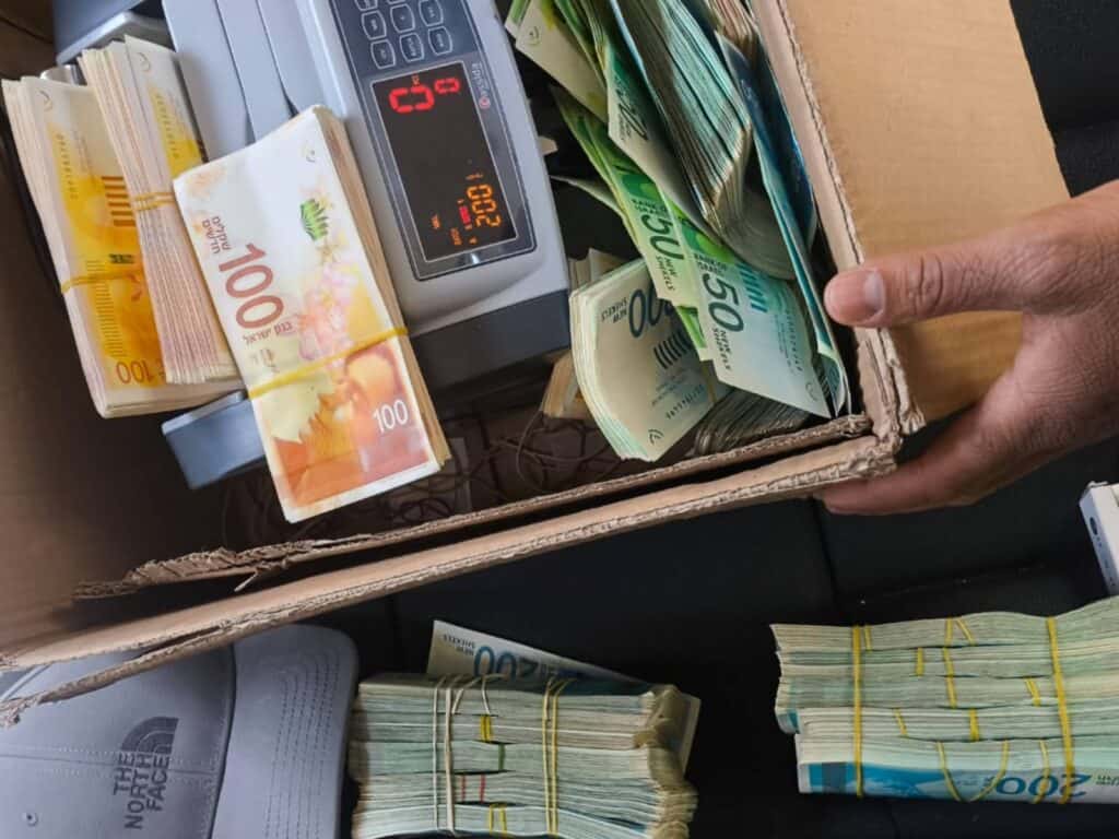 Dalam penggeledahan di rumah dan kendaraan para tersangka, polisi menemukan lebih dari setengah juta shekel dalam bentuk tunai serta senjata, termasuk granat kejut dan magasin senapan M16