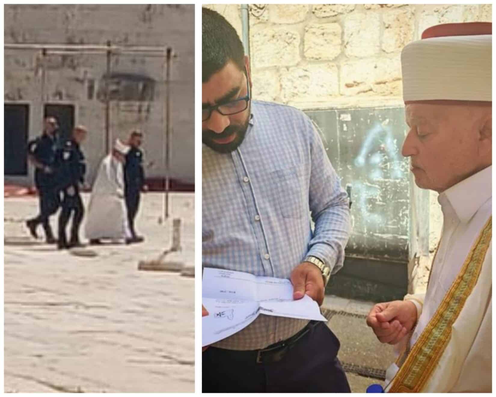 Segera setelah khutbah, polisi Israel memasuki ruangan tempat Syekh Hussein berada. Video dari sumber Palestina menunjukkan sang mufti dikawal keluar kompleks oleh beberapa petugas melalui Gerbang Mughrabi – yang biasanya digunakan oleh pengunjung Yahudi. Sumber juga melaporkan bahwa polisi menggeledah kantor kepala keamanan Waqf dan kantor Direktur Masjid Al-Aqsa, Syekh Omar al-Kiswani, sebelum penahanan terjadi