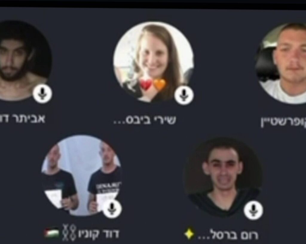 In un’app di chat vocali con più partecipanti, negli ultimi giorni sono apparse immagini di ostaggi e di persone sopravvissute alla prigionia, accompagnate da conversazioni dal tono derisorio guidate da adolescenti. Le immagini restano sullo schermo mentre i dialoghi si sviluppano attorno ad esse.