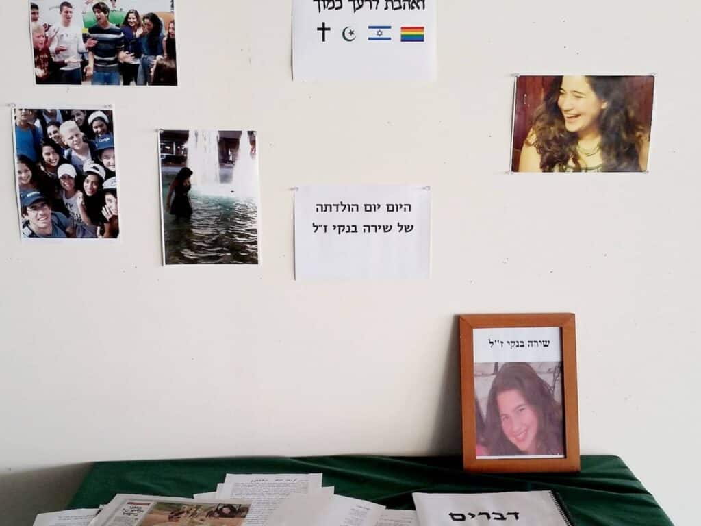 In a modest corner of a Jerusalem school hallway, students maintain a small tribute to her. A smiling photo, handwritten notes, and a rainbow peace sign hang beside the words: “Love your neighbor as yourself.” In a way, that quiet memorial speaks louder than the march itself